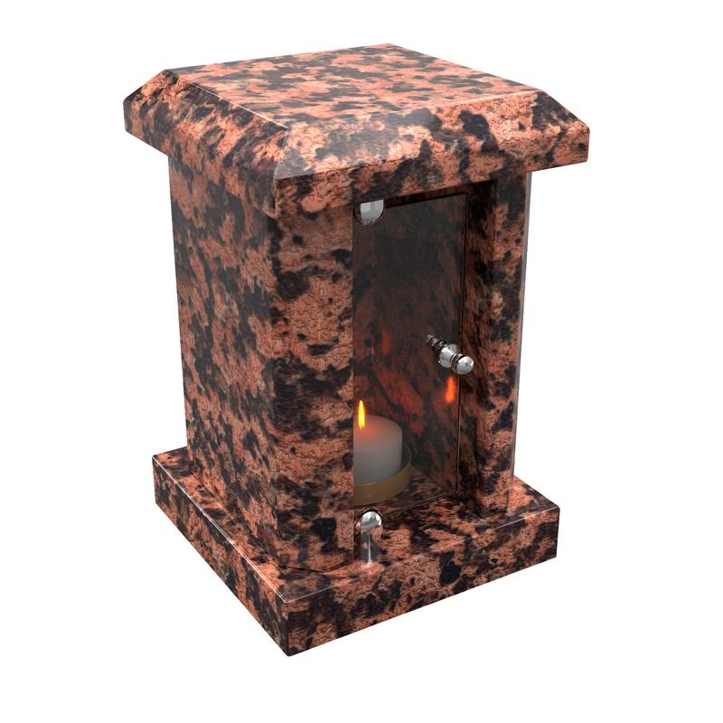 Прямоугольная лампада из натурального гранита — надёжный и эстетичный элемент для оформления мемориалов и могил. Изготавливается из прочного гранита более чем с 20 месторождений, включая тёмные, светлые и цветные оттенки. Стеклянная дверца защищает свечу от осадков и ветра.